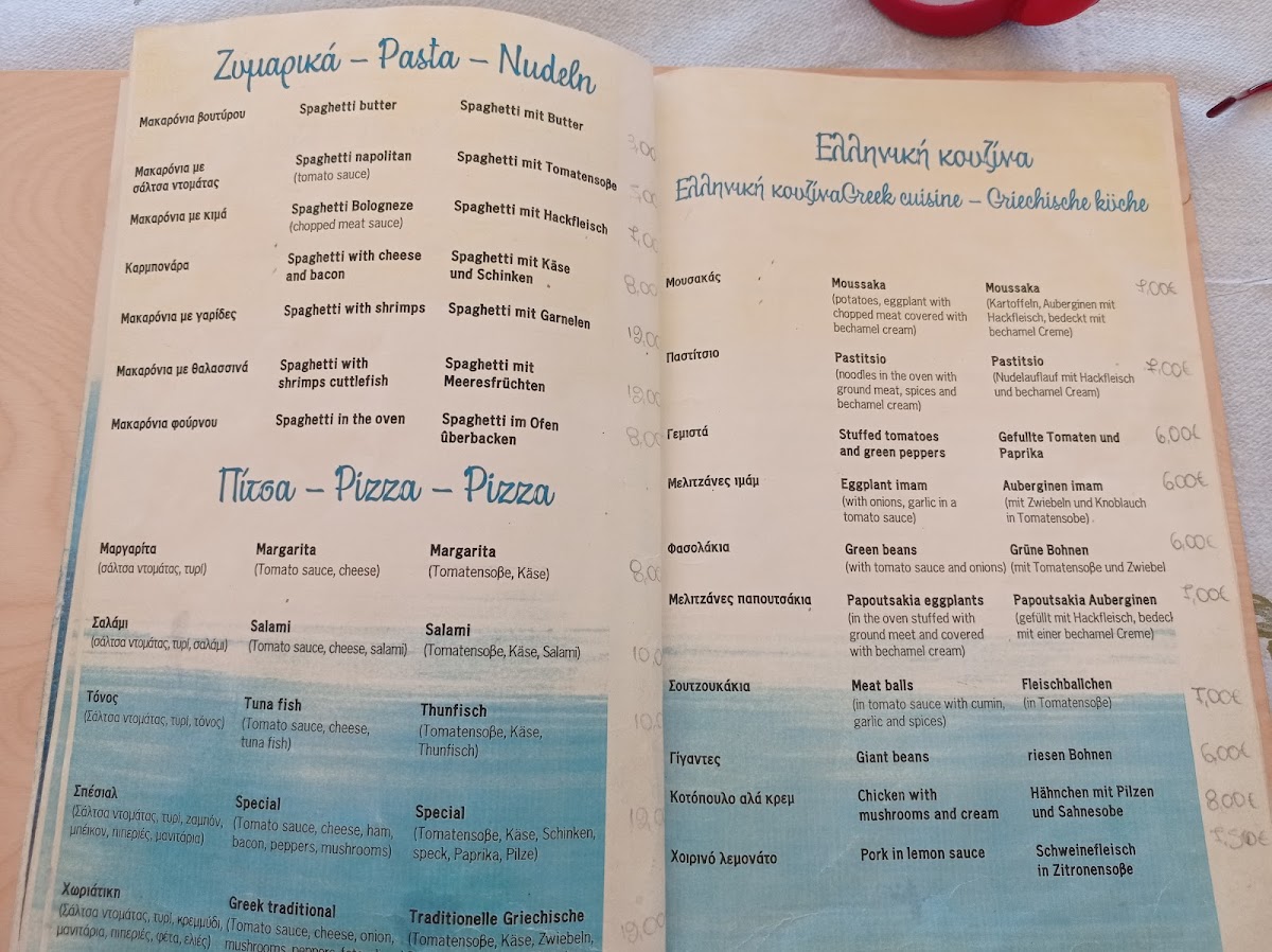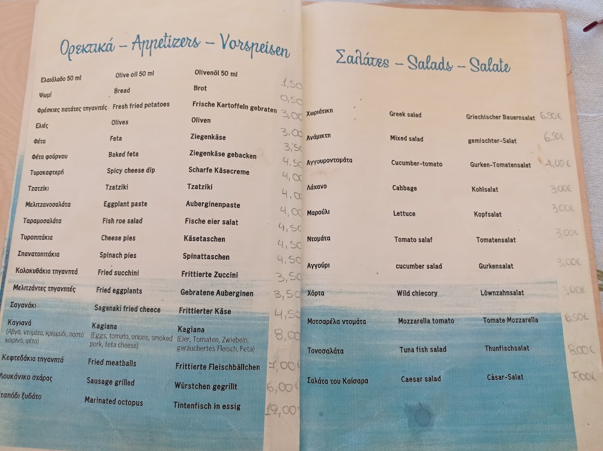 The menu at Zaga Beach offers a delightful selection of dishes that reflect the rich flavors of Greek cuisine. Among the highlights are the hearty Pork Chop, a tender and flavorful dish that promises to satisfy any meat lover, and the traditional Σαρδέλεσ Ψητέσ (grilled sardines), which brings a fresh and smoky taste of the Mediterranean. For those seeking something more adventurous, the Griechische Pizza is a unique twist on the classic, blending local ingredients with a crispy crust. Lastly, the Γίγαντεσ (giant beans) is a perfect choice for vegetarians, with its savory, comforting flavors that make it a standout option on the menu. Each dish offers a distinct experience, making Zaga Beach an excellent choice for anyone craving authentic Greek flavors in a relaxed beachside setting.